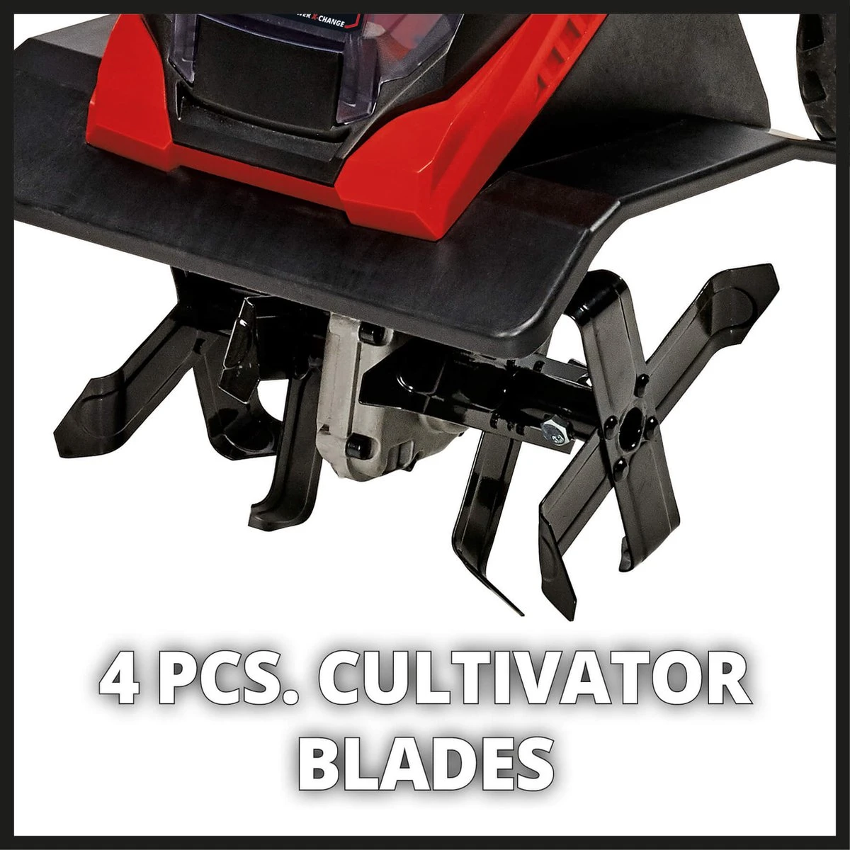 Heb je al gereedschap van de Power-X-Change-productlijn, dan kun je dezelfde accu’s en lader gebruiken voor deze Accu Grondfrees. Door de technische mogelijkheden van nu met lithium-ion accu’s heeft ook Einhell een complete productlijn ontwikkelt waarbij de accu’s onderling uitwisselbaar zijn. Binnen deze Power-X-Change productlijn kunt u dus één en dezelfde accu in verschillende machines gebruiken. Bijvoorbeeld met de accu van de schroefmachine even snel de graskantjes trimmen, zelfs het opladen van USB producten, alles is mogelijk. U kunt vrijwel alle artikelen uit de Power-X-Change productlijn ook als “KIT” versie (inclusief accu & lader) aanschaffen. Als u reeds een Power-X-Change accu heeft zorgt dit er dus voor dat u veel geld kunt besparen. Doordat Einhell zelf een intelligent accu systeem heeft ontwikkeld, kunt u ook met toekomstige Einhell machines uw bestaande accu’s blijven gebruiken. Dit scheelt u geld in uw portemonnee. Het opladen van de accu’s voor deze Accu Grondfrees verloopt snel, met de Einhell Power-X-Change 18 V snellader. De lader zit niet bij de machine inbegrepen.